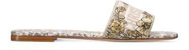Erlebe Diors Dway Slides, eine stilvolle Verkörperung von Eleganz. Mit dem markanten Christian Dior Paris-Signaturstickerei auf dem Oberteil und einer Lederinnensohle mit dem Millefiori Unicorn-Motiv bieten diese Slides eine geschmackvolle Erscheinung. Die Kalbsledersohle mit einem eingravierten Stern symbolisiert Diors Glücksbringer.