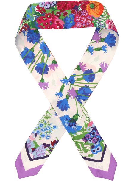 Die Twillschleife Garcina ist eine Kreation von Gucci Dieses seidige Accessoire ist durch farbenfrohe Floraldrucke verziert. Ideal zum Ausschmücken Ihrer verschiedenen Frisuren.
