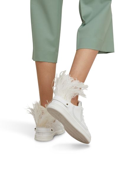 Die „Net“-Sportschuhe mit Federn verkörpern Valentinos Wunsch, Leichtigkeit und Poesie in den Alltag der Frauen zu bringen. Tragen Sie sie zu einem leichten und hauchzarten Kleid.
