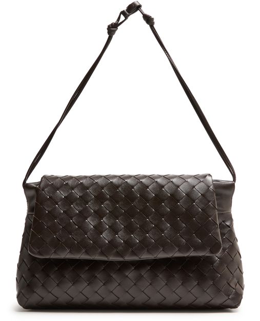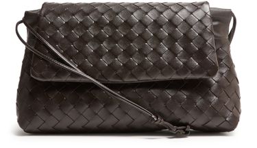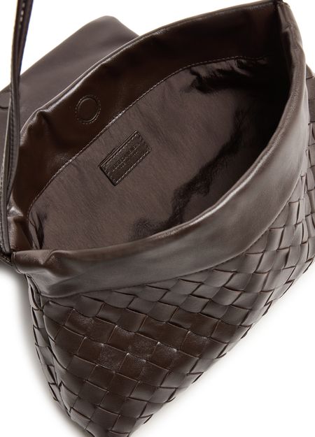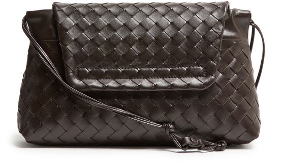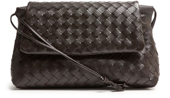 Genieße die Giorno-Pouch von Bottega Veneta, geprägt von der Intrecciato-Flechttechnik und geometrischen Details. Ein einzelner Griff, dünner Trageriemen und Klappenverschluss sorgen für stilvolle Funktionalität, während das Logo auf der Vorderseite und Metallic-Finish das Design vollenden.