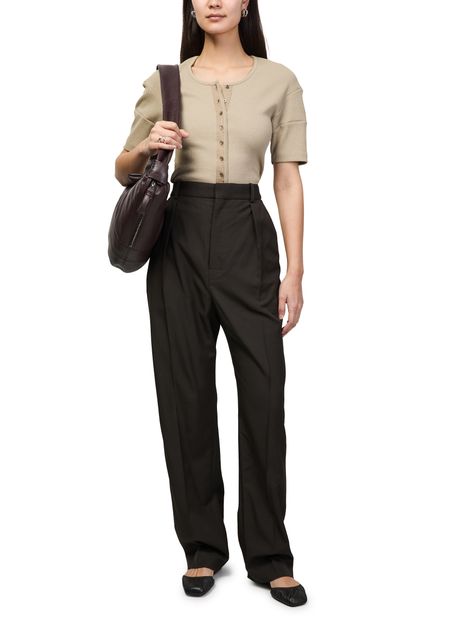 Genieße die große Tasche Croissant von Lemaire, gefertigt aus genarbtem Leder mit einem einzelnen Griff. Sichtbare Nähte und ein Reißverschluss betonen die hochwertige Verarbeitung, während die Hobo-Form dem klassischen Schultertaschen-Design eine moderne Note verleiht.