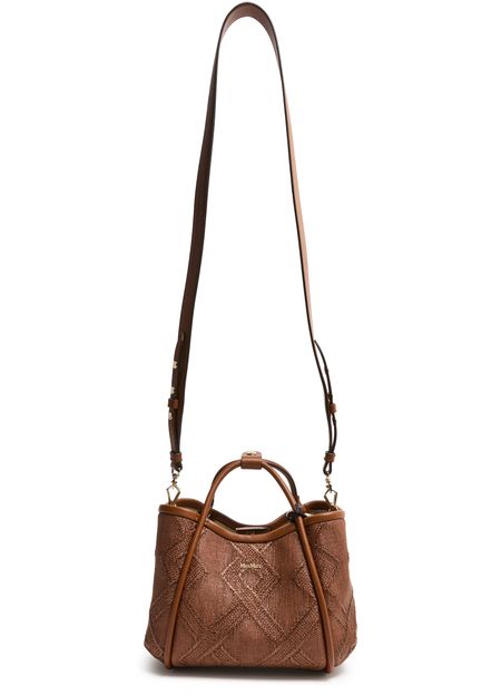 Genieße die marinefarbene Crossover-Tasche von Max Mara mit geometrischen Details und goldfarbenem Logo auf der Vorderseite. Breiter, einstellbarer Riemen und Doppelgriffe sorgen für flexible Tragemöglichkeiten, während sichtbare Nähte und ein großes Innenfach stilvolle Funktionalität bieten.