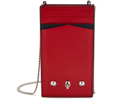 Schützen Sie Ihr Handy in dieser eleganten Handyhülle von Alexander McQueen mit glänzendem Schimmer, deren Henkel aus Strick um den Hals getragen werden kann.