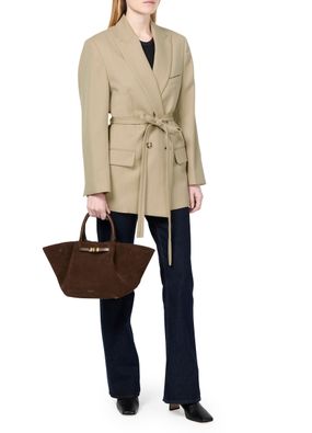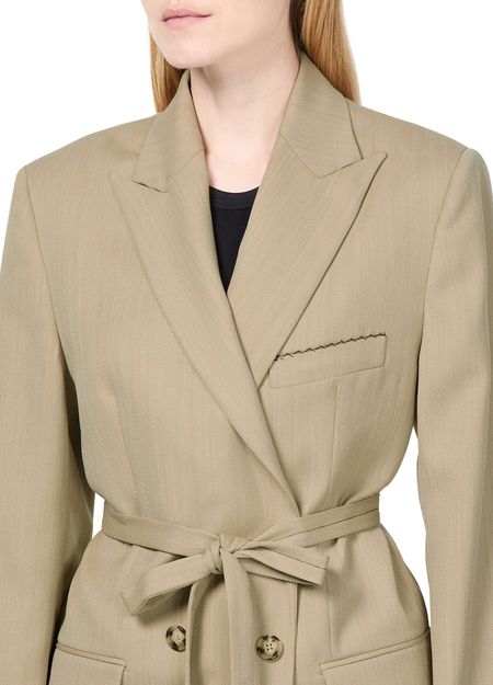 • Beschreibung : knöpfe auf der vorderseite, anzugkragen, kurze, gefüttertes modell, zwei fronttaschen, pattentasche, brusttasche, paspelierte pattentaschen, lange ärmel, mäntel mit gürtel.