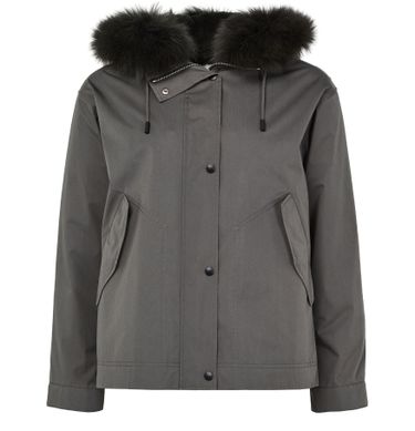 Entdecke Yves Salomons Kapuzenjacke aus Baumwolle, eine regular fit Parka, die zwei Materialien mit einer kurzen Silhouette kombiniert. Mit Knopfverschluss und langen Ärmeln ausgestattet, wird diese Jacke durch Seitentaschen und ein Pelzdetail veredelt. Ihre Polstertextur verleiht einen Hauch von Raffinesse, perfekt für vielseitige Stylings.