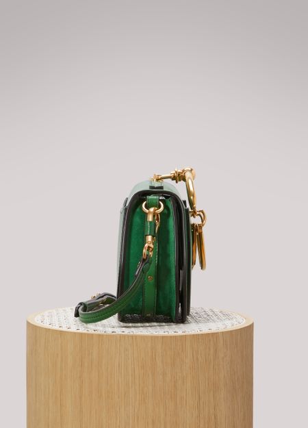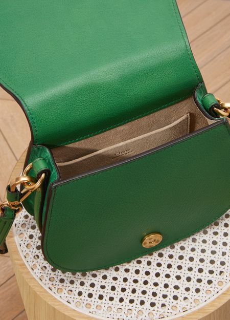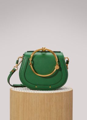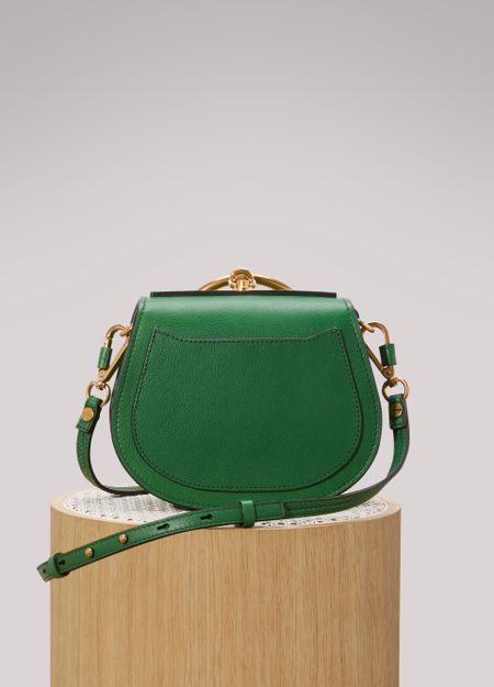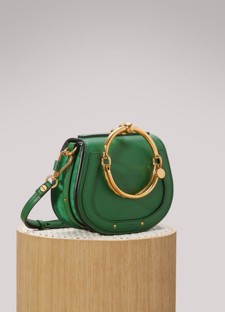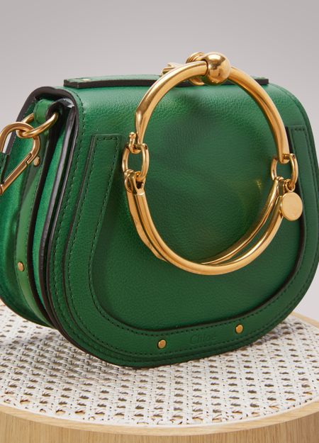Diese Nile-Armbandtasche aus Glatt- und Velourskalbsleder von Chloé greift den Reiterstil der Mini Marcie mit einem goldenen Messingarmband wieder auf.