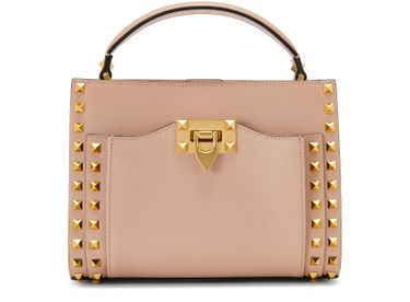 Die kleine Tasche Rockstud, die mit emblematischen Verzierungen des Modehauses Valentino versehen ist, ist ein Accessoire, dessen geringe Größe den ultraschicken Stil unterstreicht.