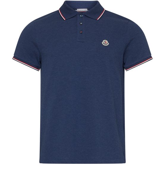 Ein unwiderstehlicher Klassiker: Dieses Poloshirt ist auf der Brust mit dem Logo des Modehauses Moncler und an Armen und Kragen mit farbigen Streifen versehen.