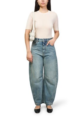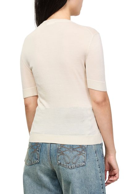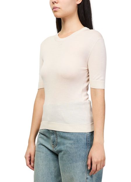 Genieße das kurzärmelige Top aus Merinowolle von Courreges mit rundhalsausschnitt und gesticktem logo auf der vorderseite. Die feine Merinowolle und die klaren Linien verleihen dem Top eine moderne Note – ideal für vielseitige Looks von Tag bis Abend.