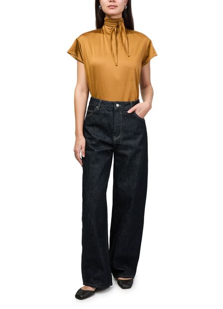 Erlebe Lemaire kurzärmeliges Top mit Schal, das mit einer stilvollen Mancheron-Ärmel und fließendem Stoff überzeugt. Das integrierte Schal-Detail verleiht dem Look Raffinesse und macht dieses Top zum vielseitigen Begleiter für verschiedene Outfits.