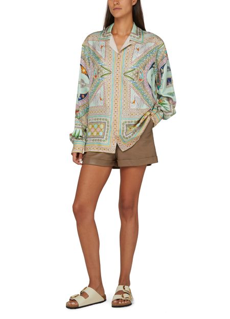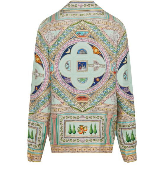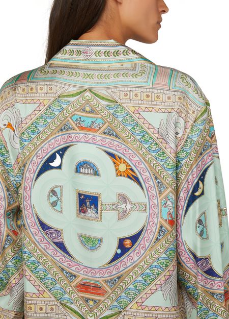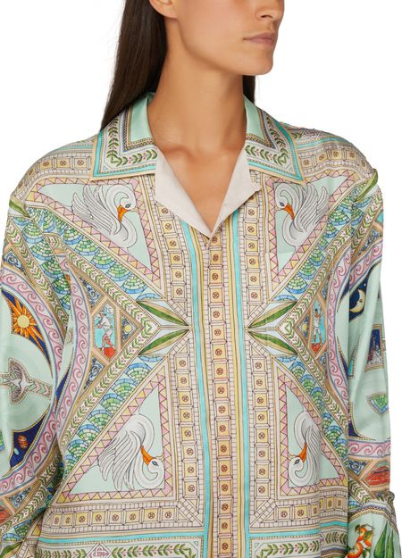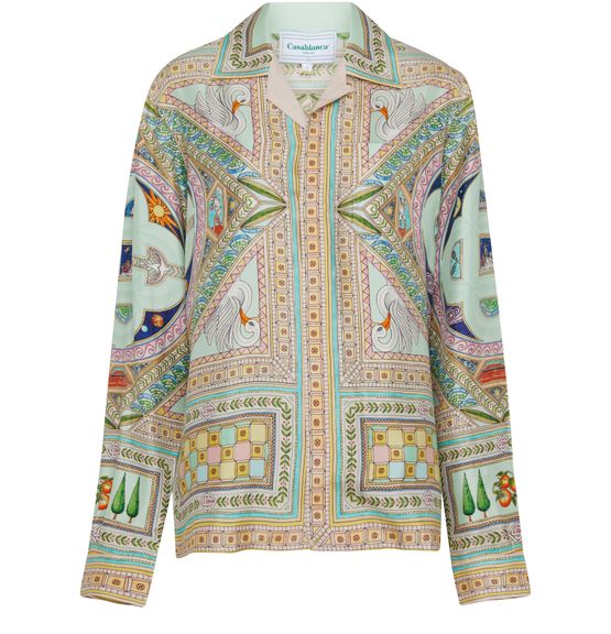 Beschreibung : verdeckter verschluss, etikett mit logo auf der rückseite, lange ärmel, allover-druck, bedruckt, kubanischer kragen, geknöpfte manschetten, eng anliegende ärmel.