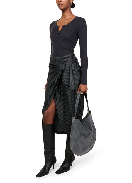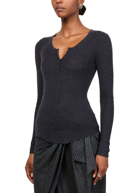 Entdecke Isabel Marants Langarm-Top Idite, ein Meisterwerk moderner Eleganz. Dieses körperbetonte Top besticht durch seine Rippbündchen und den Rundhalsausschnitt, ergänzt durch lange Ärmel und einen Knopfverschluss. Die geraffte Taille betont die Silhouette und macht es zu einer vielseitigen Wahl für jeden Anlass.