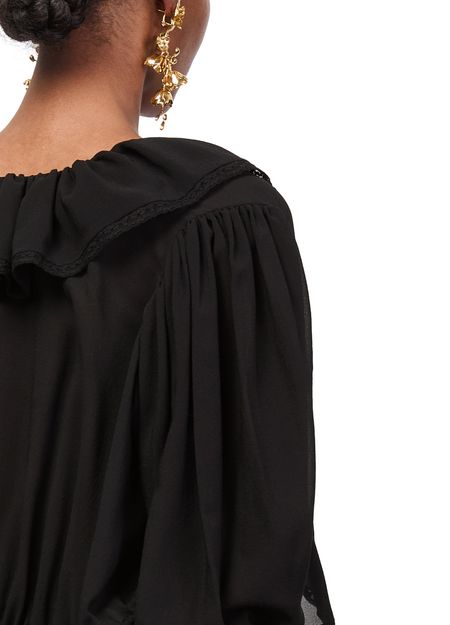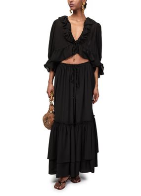 Erlebe Chloes langärmelige Bluse mit stilvollem V-Ausschnitt und dreiviertel-Ärmeln. Der Verschluss mit Schleife und die gegürtete Taille formen eine feminine Silhouette, während die Raffungen an der Taille für Struktur sorgen. Kombiniere sie vielseitig zu Hosen oder Röcken für einen modernen Auftritt.