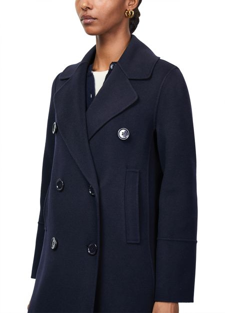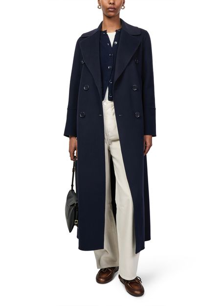 Genieße den langen Mantel von S Max Mara mit klassischem Kragen, zweireihiger Knöpfung und praktischen Pattentaschen. Die lange, elegante Silhouette und die langen Ärmel machen dieses Modell zum stilvollen Begleiter für verschiedenste Anlässe.