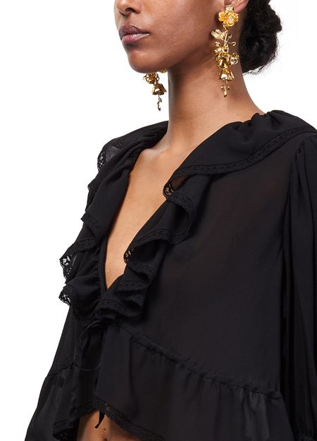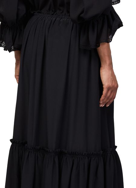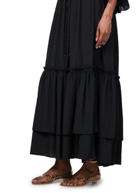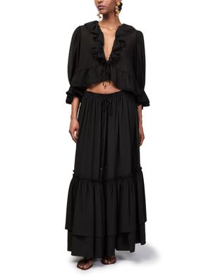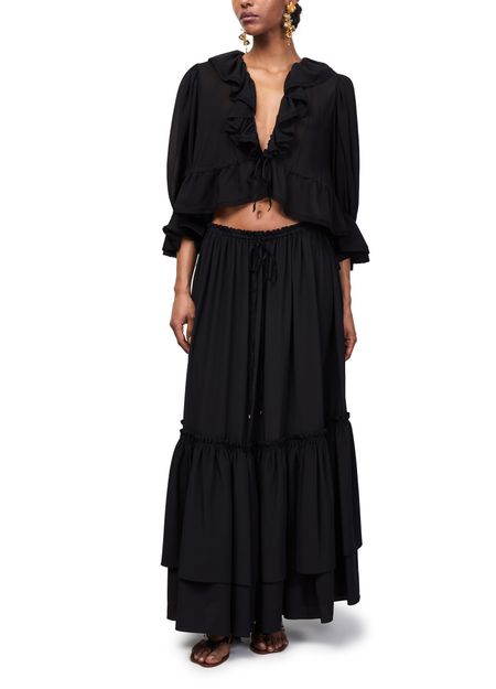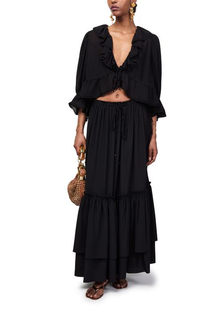 Genieße den langen Rock mit Volants von Chloé – ein Midirock mit raffinierten Rüschendetails und an der Taille gerafftem Schnitt. Der elastische Bund mit Tunnelzug sorgt für Komfort und eine moderne Silhouette, die sich vielseitig kombinieren lässt.