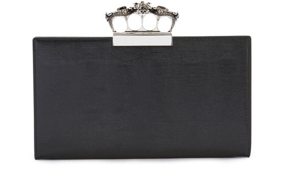 Alexander McQueen präsentiert hier die Clutch mit vier Ringen. Dieses Lederstück sorgt mit seiner Schlagring-Optik für einen energetischen Look und wird gleichzeitig durch raffinierte Ornamente veredelt.