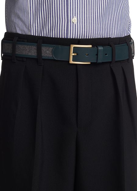 Dieser Ledergürtel zeigt das Talent der Maison Boinet. Die legendäre Designmarke setzt auf traditionelle Elemente, zugleich integriert sie moderne Details. Dieser Gürtel hat eine elegante Form mit einem abgerundeten Ende und zwei verschiedene Texturen. Die Maison Boinet, auf Lederwaren spezialisiert, verleiht diesem Accessoire einen Hauch von Finesse – mit einer feinen und eleganten Schnalle, die sich perfekt integriert. Tragen Sie es zu einer Wollhose, um...