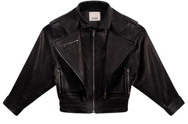 Genieße die Lederjacke Aneli von Isabel Marant – eine kurze bikerjacke aus genarbtem Leder. Reißverschluss, Brusttasche mit Reißverschluss, Steppkanten und Patchdetail sorgen für einen modernen Look. Lange Ärmel und die edle Textur machen sie vielseitig kombinierbar.