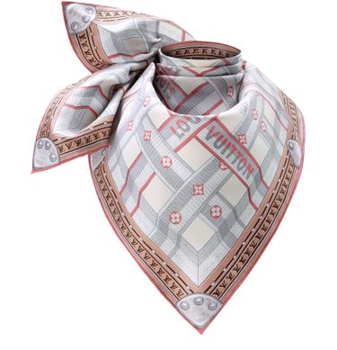 Das LV Details Carré 90 ist vom Schulterriemen der ikonischen Alma Handtasche und dem Straps Koffer inspiriert. Im Mittelpunkt steht eine Louis Vuitton Signatur, während sich teilweise überschneidende Riemen, die mit kleinen Monogram-Blüten verziert sind, im Hintergrund für einen geometrischen Effekt sorgen. Das aufwendige Design des Randes ist zudem mit den LV Initialen versehen.
