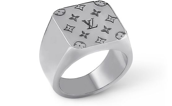 Der LV Mosaic Siegelring ist die stilvolle Interpretation eines klassischen Accessoires für Herren aus dem Haus Louis Vuitton. In dieser Saison präsentiert das Design aus massivem Metall ein Ruthenium-Finish in elegantem Grau. Im Mittelpunkt stehen dabei die ikonischen LV Initialen, welche von eingravierten Monogram-Blüten umgeben sind. Dieses im charakteristischen Stil gehaltene Modell ist die ideale Ergänzung für beinahe jeden Look.