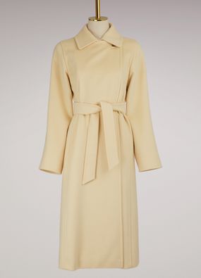Dieser elegante Mantel Soldato demonstriert die Meisterschaft von Max Mara. Er fasziniert durch seine kühn designte Linie mit raffinierten Details wie dem offenen Kragen und filigrane Nähte.
