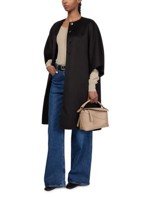 Erlebe Max Maras Mantel Moriana, ein elegantes knielanges Design, das Eleganz verkörpert. Die kragenlose Silhouette und die dreiviertel-ärmel verleihen ihm eine moderne Note, während der Knopfverschluss und die paspelierten Pattentaschen Praktikabilität bieten. Ideal für Tag und Nacht, zeigt dieser Mantel zeitlosen Stil und erstklassige Handwerkskunst.