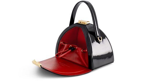 Erlebe Mlouyes Mini-Umhängetasche Pandora, ausgestattet mit einem einzelnen griff und einem dünnen trageriemen. Das gold-finish verleiht diesem Accessoire einen modernen Glanz und macht es zum stilvollen Highlight jeder Garderobe.