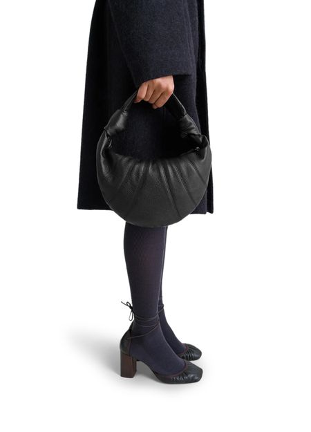 Genieße die Mini-Tasche Fortune Croissant von Lemaire, gefertigt aus genarbtem Leder und sichtbaren Steppnähten. Ein einzelner Griff, Reißverschluss und kontrastierendes Futter verleihen diesem Schultertaschen-Design eine moderne, elegante Note.