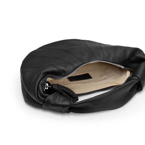 • Beschreibung : Schultertaschen, einzelner griff, ledergriff, genarbtes leder, reißverschluss, offene innentasche, kontrastierendes futter, sichtbare steppnähte.