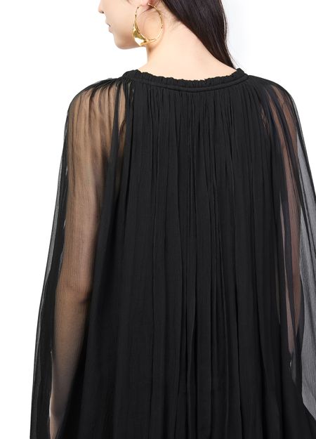 Genieße das minikleid mit kimono-ärmeln von Chloe, das mit langen ärmeln und rüschendetails begeistert. Gebogte ränder und ein drapierungsdetail verleihen dem Look Raffinesse, während das transparente futter für ein modernes, luftiges Tragegefühl sorgt – perfekt für vielseitige Auftritte.