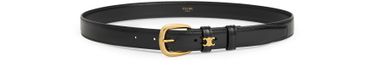 Entdecke den mittelgroßen vivienne Gürtel 25 mm aus Taurillon Leder von Celine. Er besticht durch sein Mittel-Taille-Design mit goldener Veredelung, einer abgerundeten Schnalle und einem Triomphe Metallring um die erste Schlaufe. Ein stilvolles Accessoire für einen eleganten Auftritt.