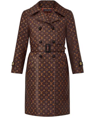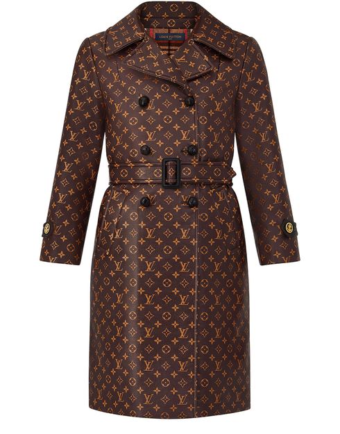 Ein neu interpretierter Klassiker: Kürzere Ärmel und ein großer Reverskragen verleihen diesem Trenchcoat samt Gürtel die neue Silhouette der Saison mit einer Vintage-Note. Das Modell ist mit geflochtenen Knöpfen aus Leder auf der Vorderseite sowie Ankerknöpfen an den Manschetten versehen. Das Seiden-Hanf-Finish sorgt mit einem durchgängigen Monogram-Motiv für ein modisches Statement des Hauses Louis Vuitton. Der Trenchcoat ist mit karierter Wolle gefüttert.