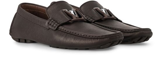 Der ikonische Monte Carlo Mokassin zeigt sich in dieser Saison in genarbtem Taïga Leder passend zur Lederwarenkollektion. Das Modell ist eine Hommage an die Handwerkskunst des Hauses Louis Vuitton und verfügt über ein handvernähtes Oberleder, das mit einem LV Initialen Detail akzentuiert ist. Durch die schlauchartige Machart und die Außensohle mit großen Gumminoppen ist der Schuh außerdem ausgesprochen leicht und geschmeidig.