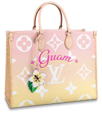 Die OnTheGo GM Tote ist für die Resort 2021 Kollektion in pastellfarbenem Monogram Giant Canvas mit Farbverlauf und Seitenfalten aus gewebtem Bast gefertigt. Sie präsentiert sich mit dem Namen einer Urlaubsdestination und einem speziell für dieses Reiseziel entworfenen Anhänger aus Leder. Die große, geräumige Tote ist ein vielseitiges Modell für den täglichen Gebrauch und kann mit ihren Schulterriemen oder den Tragegriffen an der Oberseite angenehm...