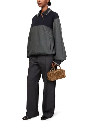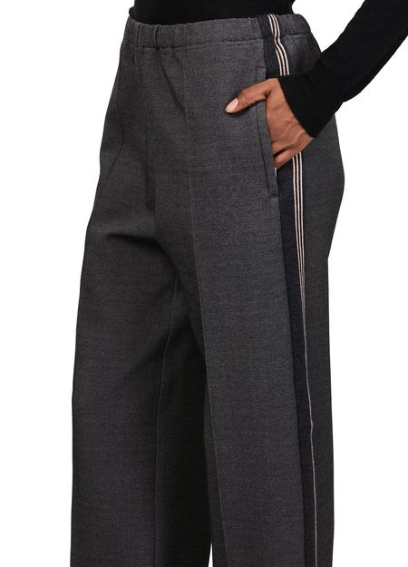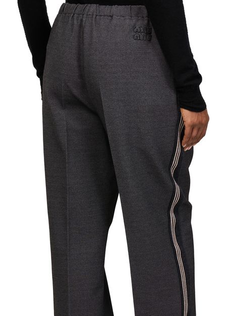 Entdecke Miu Mius Gerade geschnittene Strickhose, der Stil und Komfort vereint. Diese freizeit hosen bieten eine elastische taille und knöchellänge für eine entspannte Passform. Das gestickte „Miu Miu“-Logo und die sichtbaren nähte verleihen Eleganz, während die frontfalten ihren schicken Look unterstreichen.