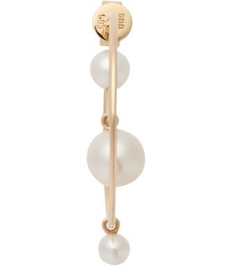 Entdecke Sophie Bille Brahe's Perlen-Ohrring Bain, der mit geometrischen Linien und Eleganz überzeugt. Mit edlen Süßwasserperlen verziert, bietet dieser Ohrring einen integrierten Verschluss für sicheren Halt. Einzelverkauf, der jedem Outfit eine raffinierte Note verleiht.