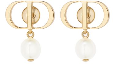 Die Ohrringe Petit CD mit dem Abbild des Modehauses Dior umrahmen das Gesicht der Frau mit ihrem Charme und ihrer Raffinesse. Eine hängende Perlmuttperle unterstreicht die Weiblichkeit dieser Accessoires.