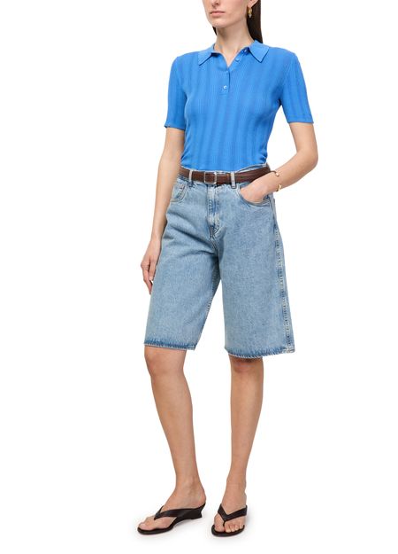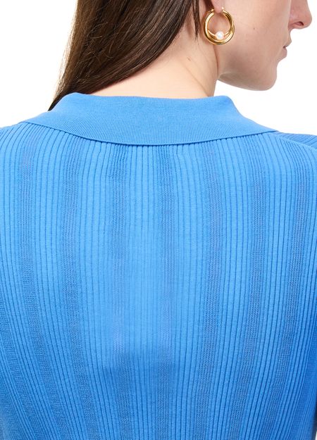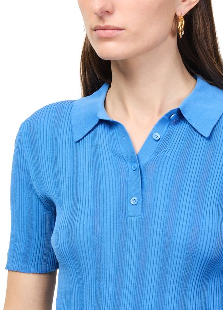 Erlebe das Poloshirt aus unregelmäßigem Rippstrick von Bompard mit stilvollem V-Ausschnitt und kurzen Ärmeln. Knöpfe auf der Vorderseite sorgen für einen modernen Akzent, während die besondere Struktur vielseitige Looks ermöglicht. Dieses Top lässt sich mühelos zu verschiedenen Outfits kombinieren.