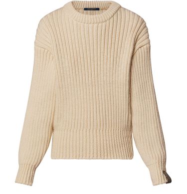 Dieser Pullover aus dickem Rippstrick bietet mühelosen Komfort. Dezente Fledermausärmel bilden dabei einen stilvollen Kontrast zu der eleganten kurzen Silhouette, während gesteppte Aufnäher mit Fischgrat-Motiv an den Ellbogen eine verspielte, modische Note kreieren. Für eine ikonische Signatur sorgt abschließend eine Lasche aus Leder mit Monogram.