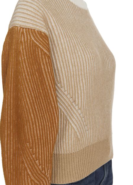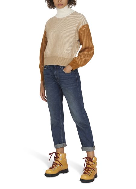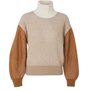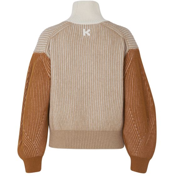 • Beschreibung : Strickpullover, lange Ärmel, stehkragen, gerader Schnitt, wärmender Stoff, streifenmuster, kontrastfarben, rippbündchen.