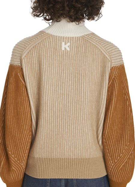 Der geknöpfte Wollpullover war noch nie so in! Kenzo spielt mit dem Kontrast der Maschen, um einen grafischen Effekt zu erzeugen, der die ganze Originalität dieses winterlichen Kleidungsstücks ausmacht.
