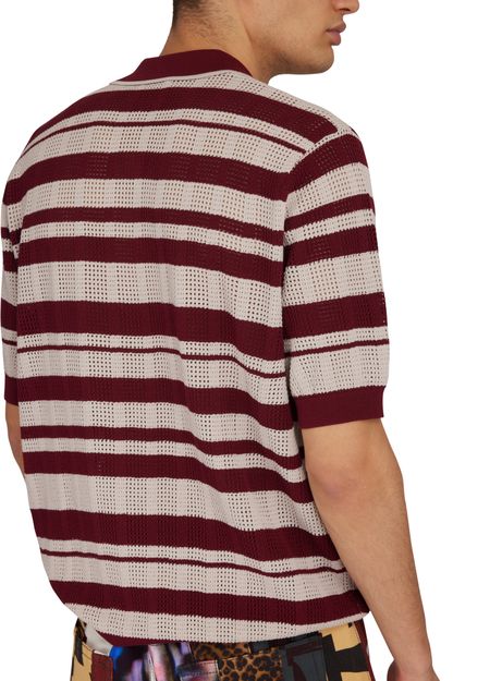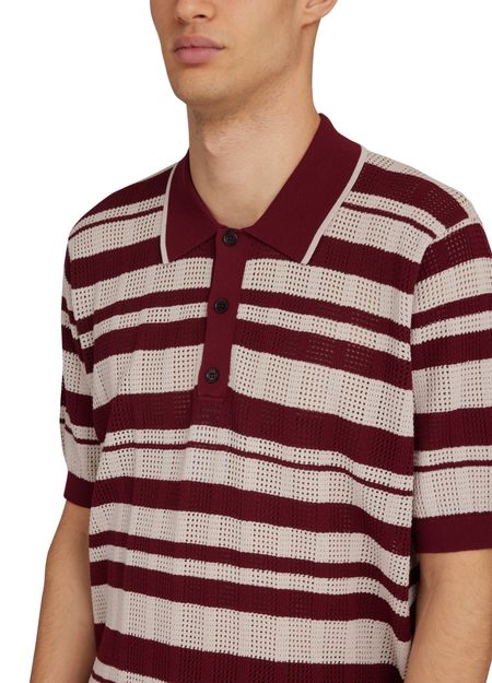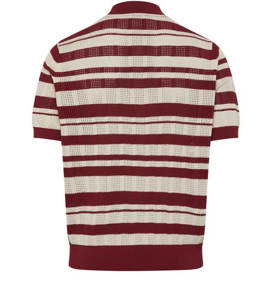 • Beschreibung : Strickpullover, kurze Ärmel, verstellbarer Kragen mit Knöpfen, zweifarbig gestreifter Druck, körperbetonter Schnitt.