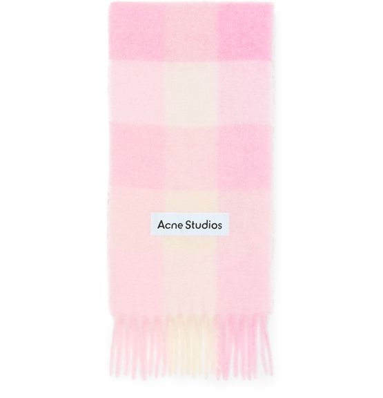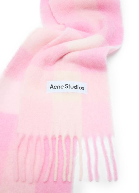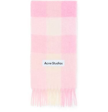 Genieße den Schal Vally von Acne Studios mit markantem Karomuster und ausgefransten Rändern. Das Logo auf der Vorderseite verleiht diesem Accessoire einen modernen Akzent für stilvolle Looks.