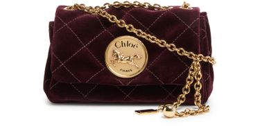 Erlebe die Schultertasche Chloe Heritage. Diese Veloursleder-Clutch besticht durch das charakteristische Oversize-Medaillon mit Pferd von Chloe, das Eleganz und Modernität verbindet. Der Kettengurt und die Magnetschließe garantieren Stil und Sicherheit, während das einzelnes Fach aus Leder Praktikabilität bietet. Gold-Finish und sichtbare Steppnähte vollenden dieses Meisterstück.