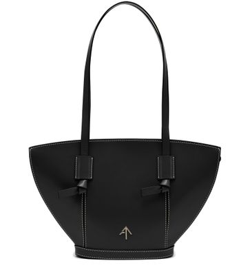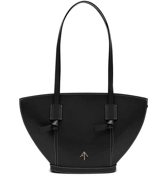 Mit glattem Ebenholzleder und makellosen Nähten zeigt die Tasche Mulan von Manu Atelier eine unvergleichliche Eleganz. Ihr langer Griff ermöglicht es, sie über der Schulter oder crossbody für einen lässigen Look zu tragen.