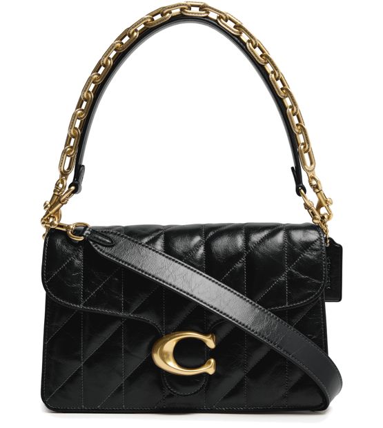 Entdecke Coach's Schultertasche Tabby in chevron-gesteppter Leder. Mit ihrem magnetischen 'C'-Verschluss, einem einzelnen Ledergriff und einem abnehmbaren Kettenriemen, verwandelt sie sich mühelos von einer eleganten Schultertasche zu einer stilvollen Umhängetasche.
