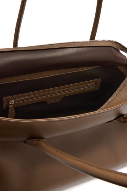 Erlebe The Row Schultertasche Terrasse, ein Meisterwerk aus glattem Leder. Mit dünnem Trageriemen und Doppelgriffen verkörpert diese Cabas-Tasche moderne Eleganz. Ein einzelnes Fach mit Reißverschluss sorgt für funktionale Raffinesse, während sichtbare Steppnähte einen eleganten Akzent setzen.