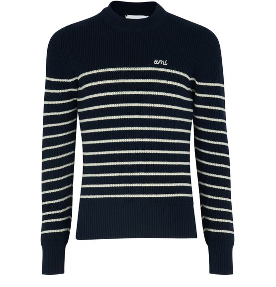 • Beschreibung : Langarmpullover, rippbündchen, rundhalsausschnitt, aufgesticktes Logo auf der Brust, streifenmuster.