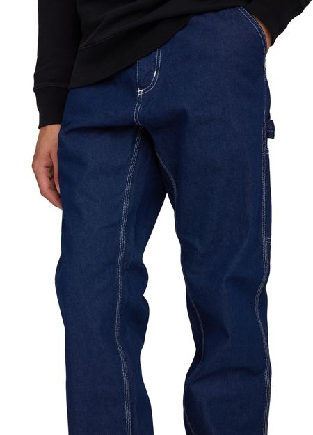 Beschreibung : seitliche paspeltaschen, aufgesetzte hintertasche, knopfverschluss und verdeckter reissverschluss, steppkanten, gürtelschlaufen, logo auf der rückseite, denim, contrast.