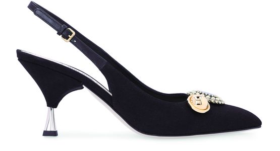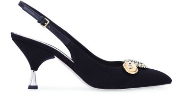 Miu Miu erfindet eine zeitlose Linie von Pumps neu, um einen eleganten Look zu unterstreichen. Wie ihr Name schon sagt, tragen die Slingbacks mit Broschen zwei Schmuckstücke, die an einen femininen Vintage-Stil erinnern.